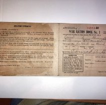 World War II rationing paperwork. a. Rubber Footwear Purchase Certificate. James Burley. Suttons Bay, Michigan. 11/09/1943 b. Rubber Footwear Purchase Certificate. John H. Burley. Suttons Bay, Michigan. 11/29/1943 c. Memo "to Men's Rubber Boots and Rubber Work Shoes Dealers From Rubber Footwear Rationing Branch." "Subject: Filing of Inventories and Classification of Types" 11/28/1942 d. Instructions about "where to send each part of OPA ratio...