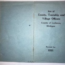 Booklet. List of County, Township and Village Officers - Co. of Leelanau - Revised for 1931.